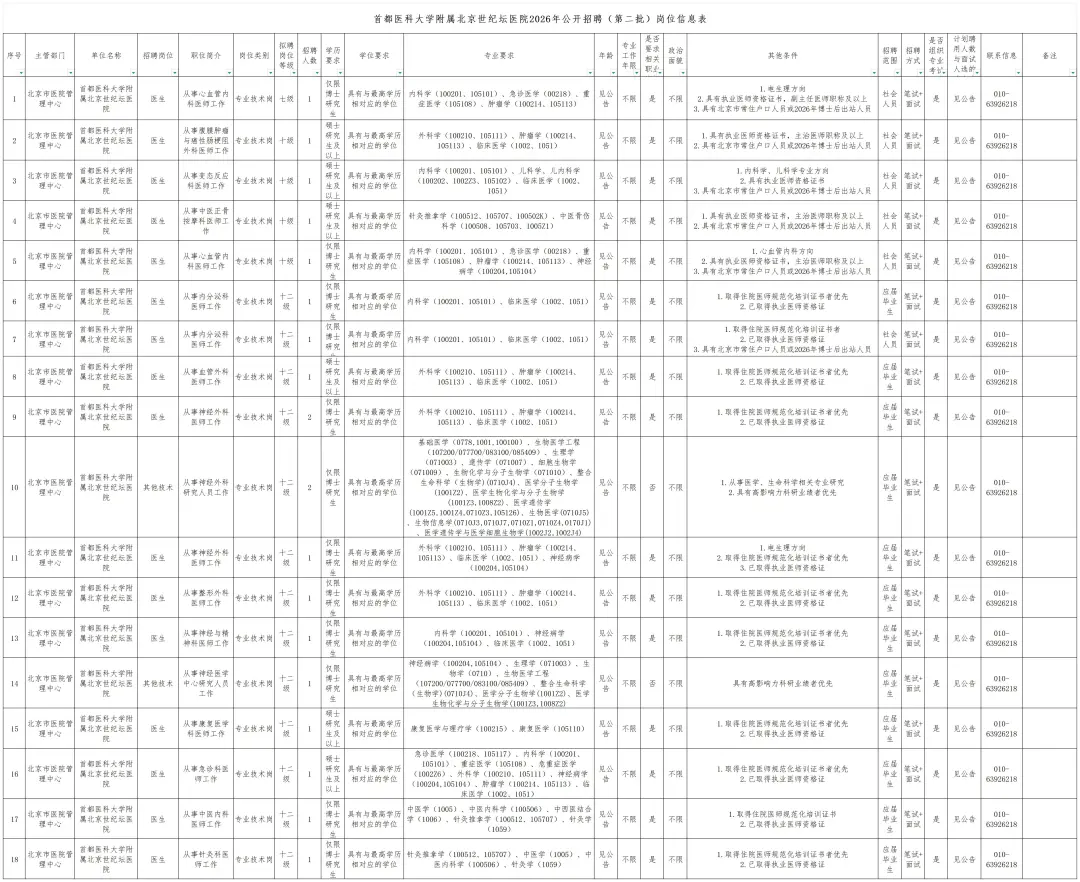 三甲 |首都醫(yī)科大學(xué)附屬北京世紀(jì)壇醫(yī)院2026年公開招聘(第二批)公告